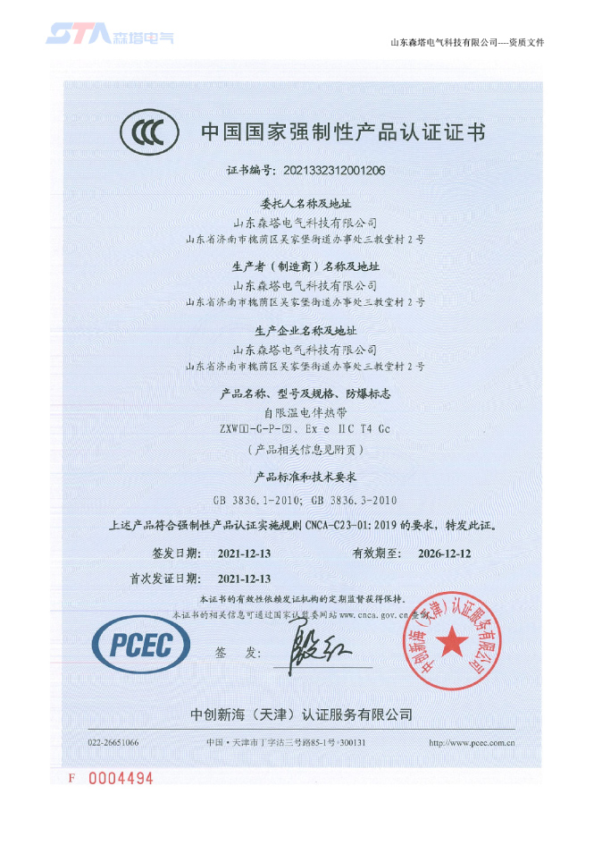 山東森塔電氣科技有限公司成立于2017年3月,位于美麗的泉城濟(jì)南,交通十分便利。公司主要從事電熱產(chǎn)品的開發(fā)、研究與制造、電伴熱和電加熱工程的咨詢和設(shè)計(jì)、產(chǎn)品的生產(chǎn)制造及安裝。是中國(guó)電伴熱生產(chǎn)廠商之一,以優(yōu)異的生產(chǎn)技術(shù)站立于電伴熱行業(yè)市場(chǎng),產(chǎn)品通過(guò)了“國(guó)家防爆電氣產(chǎn)品質(zhì)量監(jiān)督檢驗(yàn)中心”的防爆檢驗(yàn),取得了防爆合格證。產(chǎn)品主要應(yīng)用于鋼鐵、新能源、石化、建材、鐵路建設(shè)、環(huán)保、電力等領(lǐng)域。